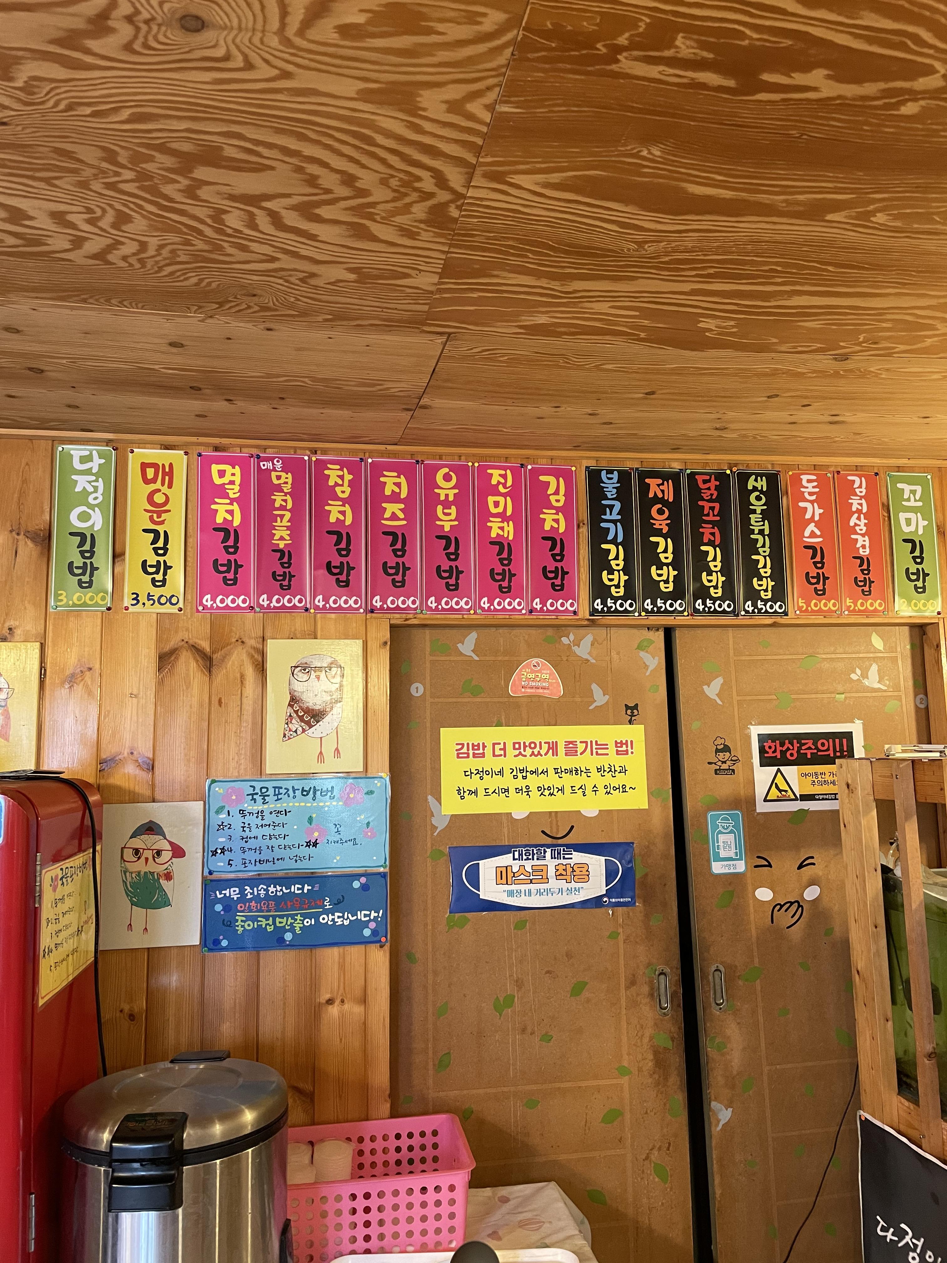 가장 유명한 다정이김밥부터 다양한 김밥이 있습니다