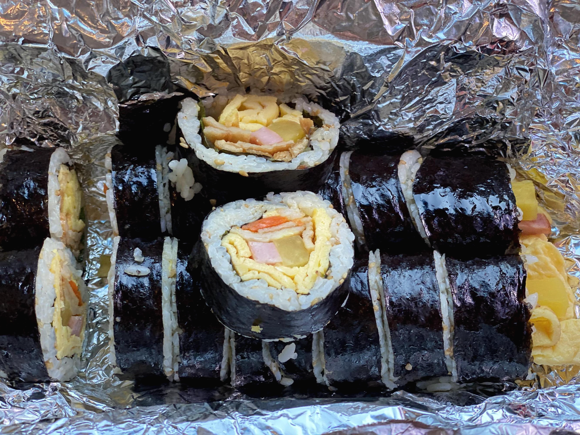 유부김밥에 튼실하게 재료가 들어가있습니다